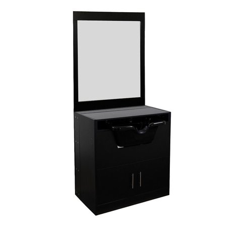 Vente en gros de meubles de salon de beauté économiques noirs pour évier station de barbier armoire à shampoing avec bol en plastique